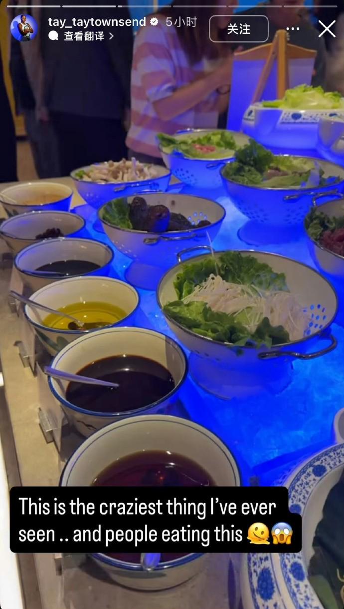 汤森德在社交媒体上晒出花胶烧甲鱼和干锅牛蛙的菜单并写道:“我必须和HR谈谈……什么鬼……甲鱼和牛蛙是野生动物。”