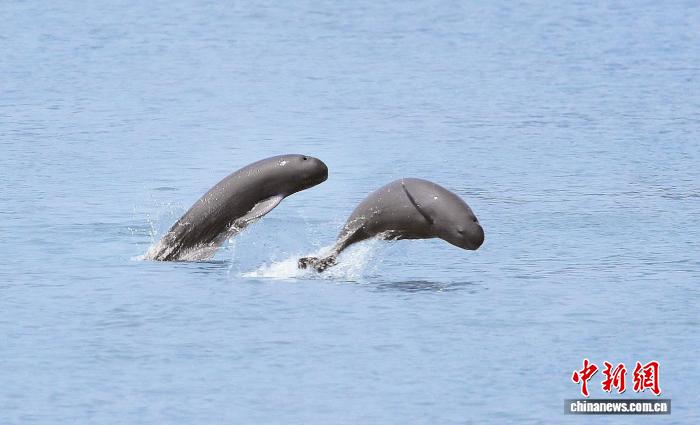2020年8月,江豚在江西南昌东湖区扬子洲镇渔业村的“江豚湾”逐浪嬉戏。(资料图)余会功 摄